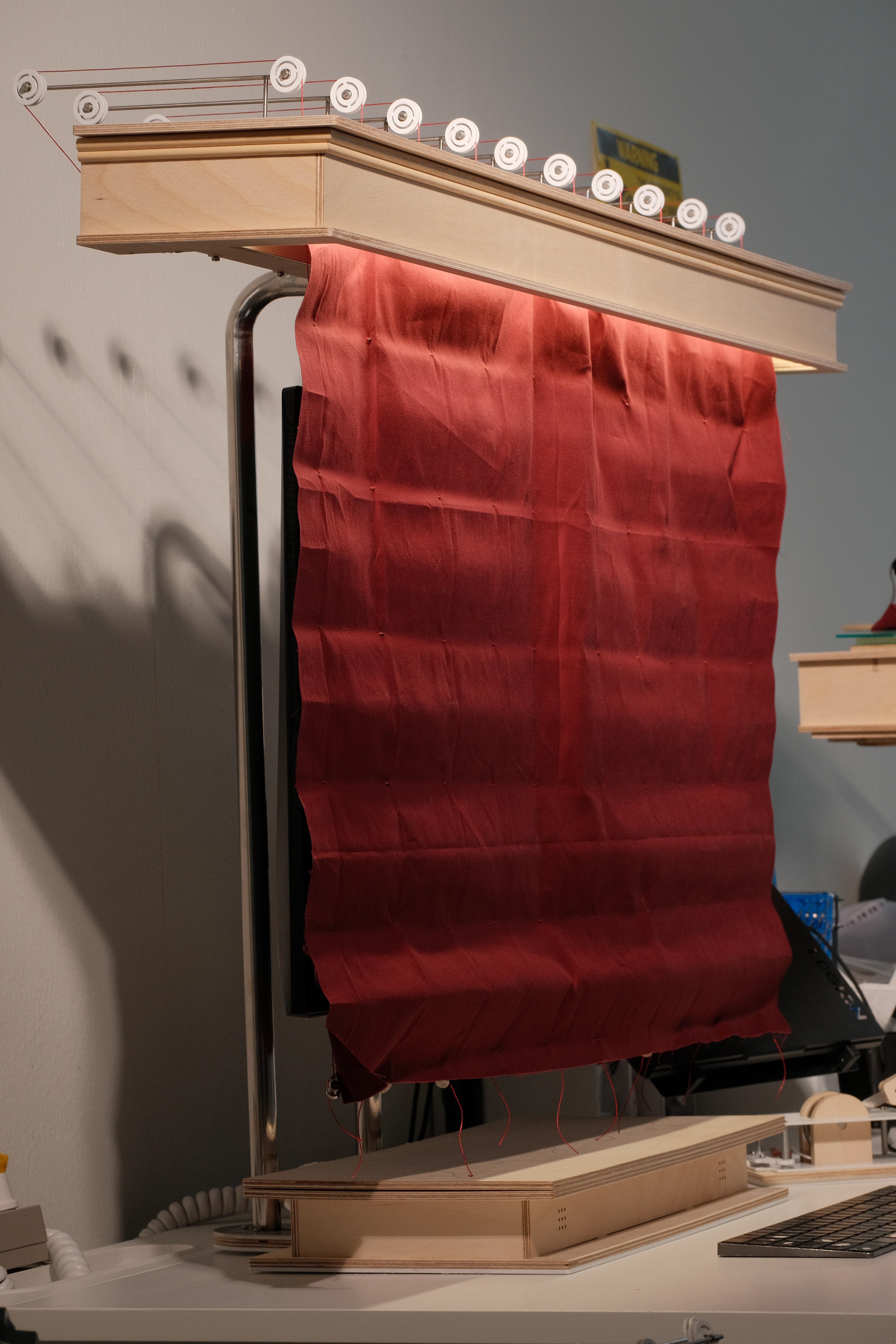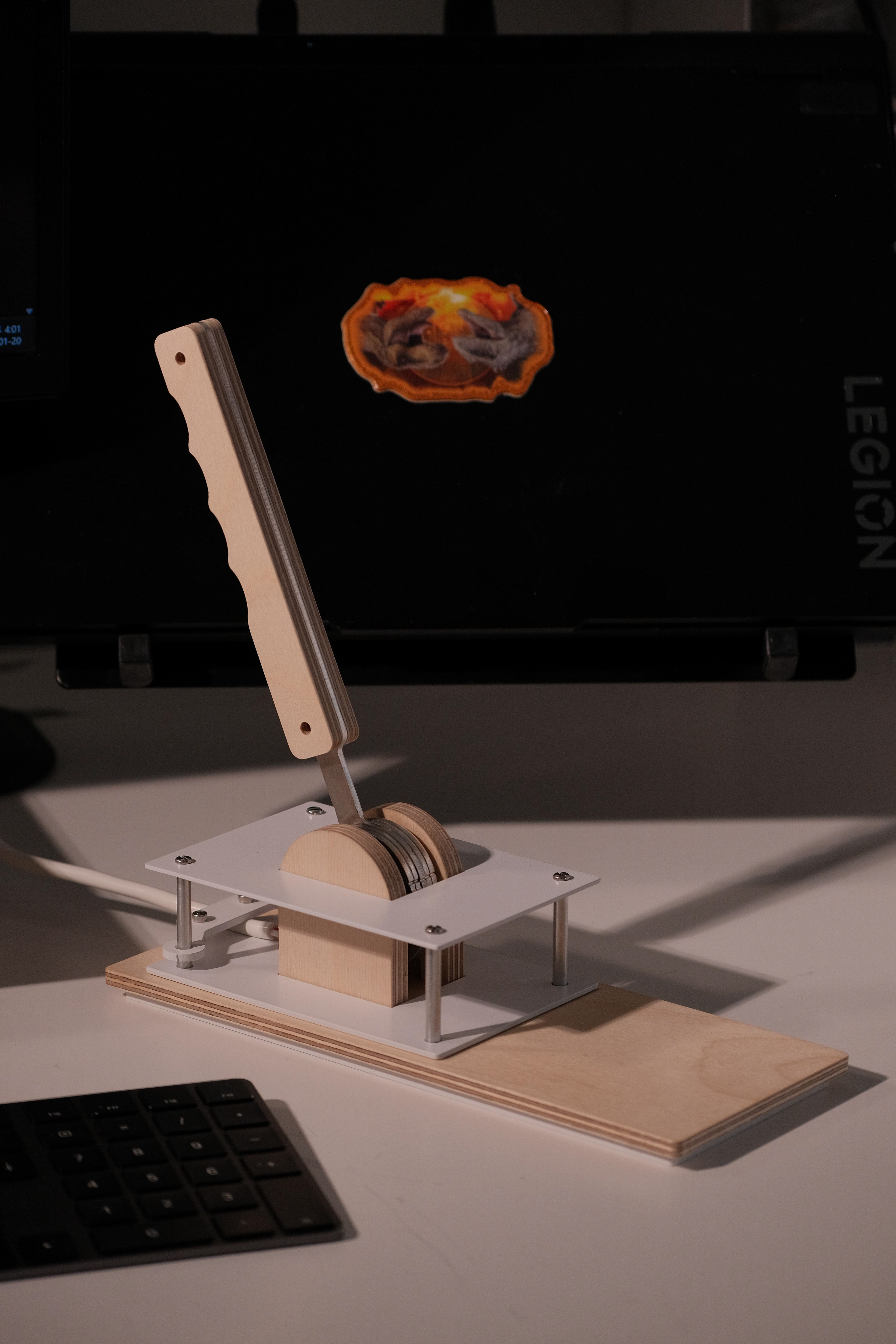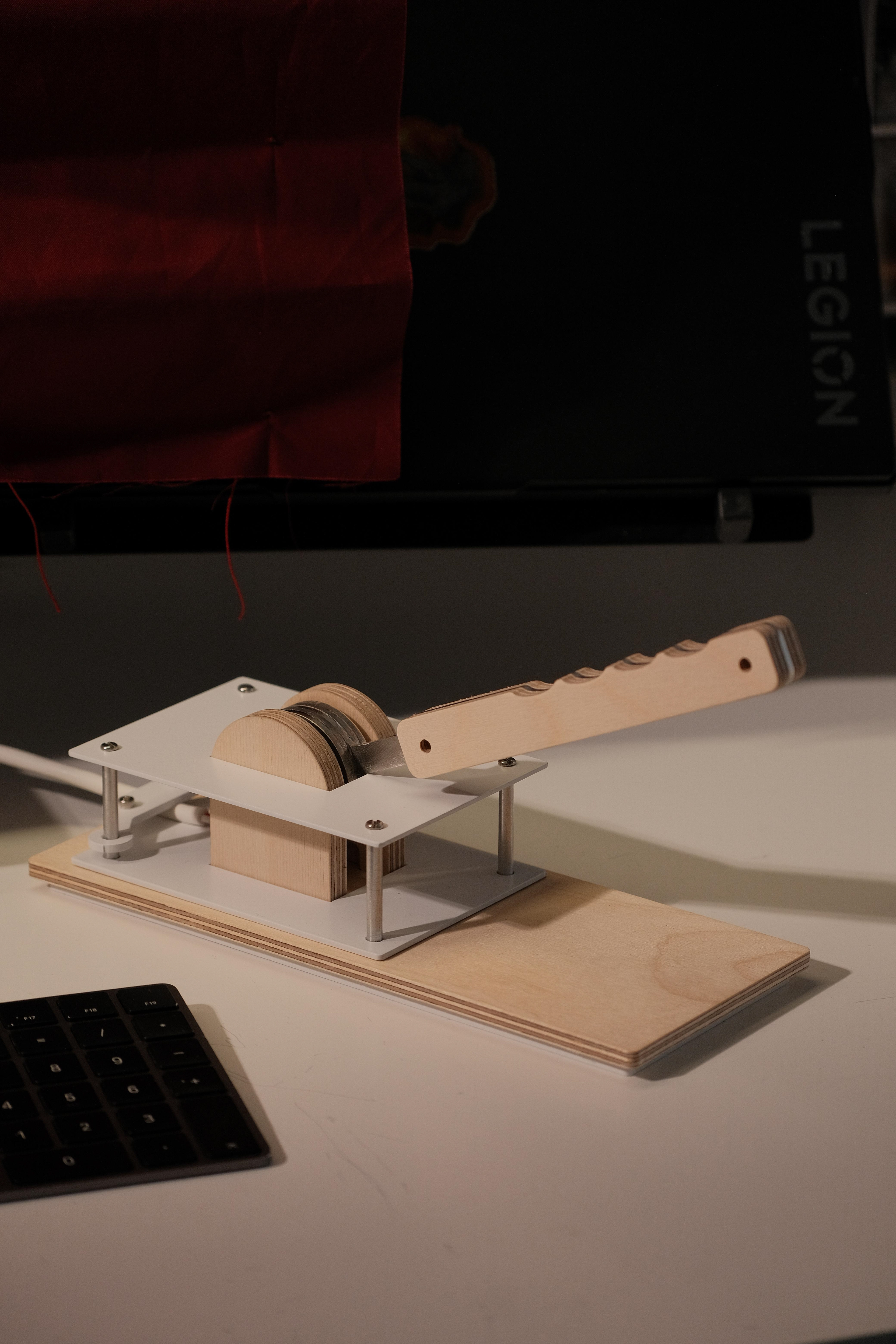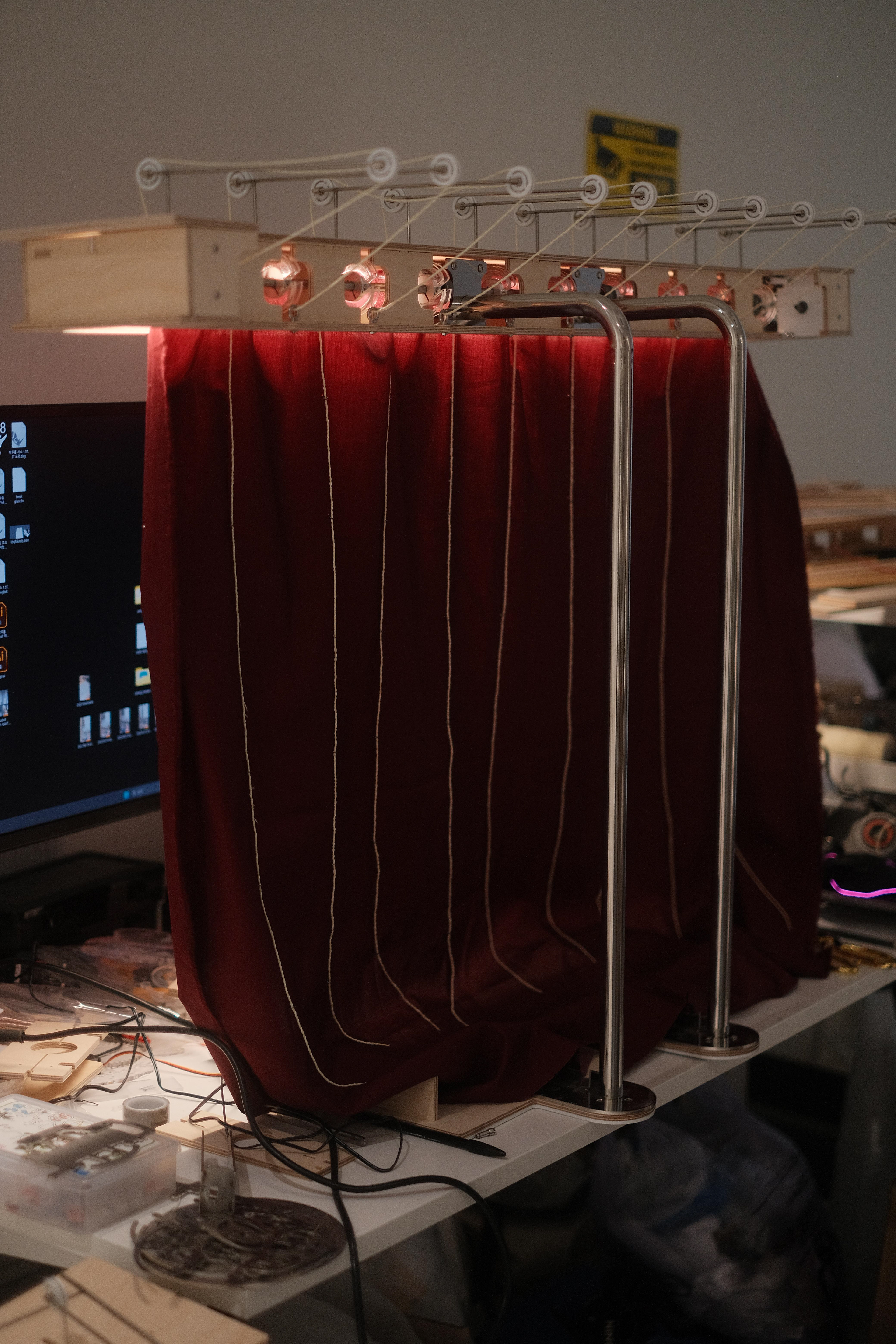 아무도 당신의 퇴근을 응원하지 않는다고 느껴질때, 또는 매일 매일 퇴근하는 순간이 너무 무뎌져 아무런 감각이 느껴지지 않을 때, 딱 당신을 위한 모니터 받침대가 있다. 레버를 잡아당기면 모니터 위에서 레드 커튼이 내려와 오늘의 막이 마감하였다는 것을 당신 주변에 공표할 수 있다. 우리 모두 하루의 1/3에 달하는 시간동안 적절히 애쓰기 마련인데, 우리에게 이에 걸맞는, 적절한 엔딩 세러모니가 필요하지 않을까?