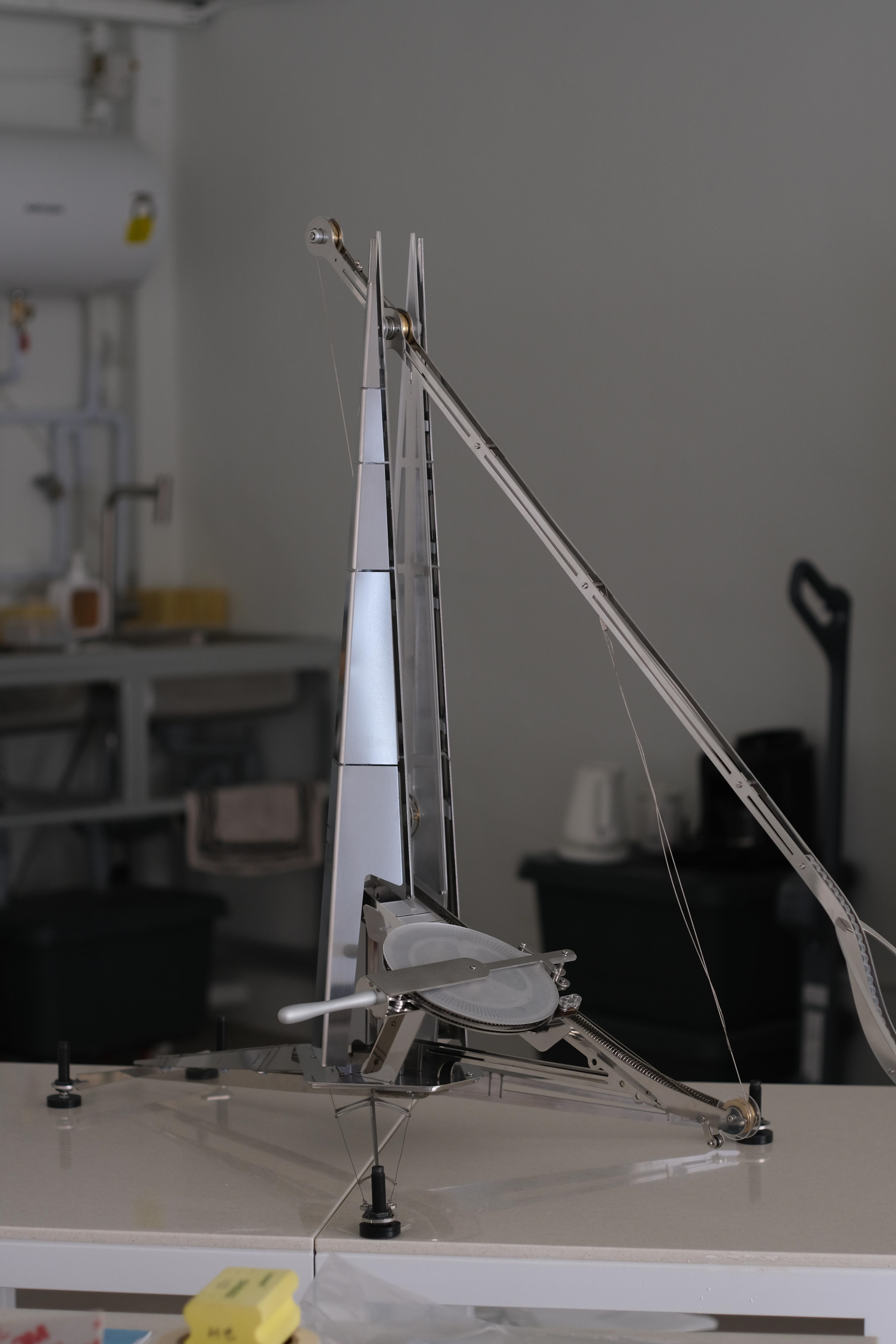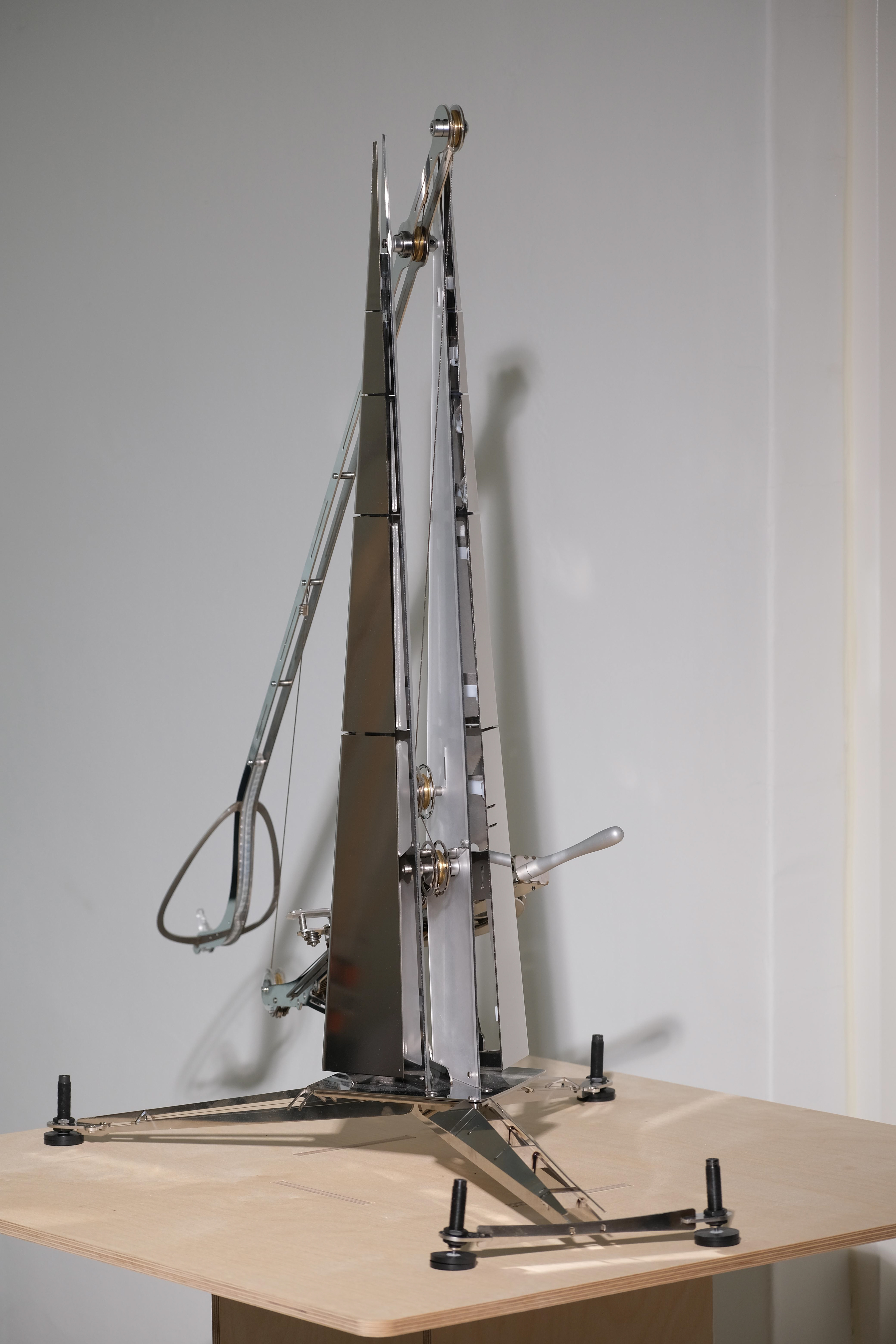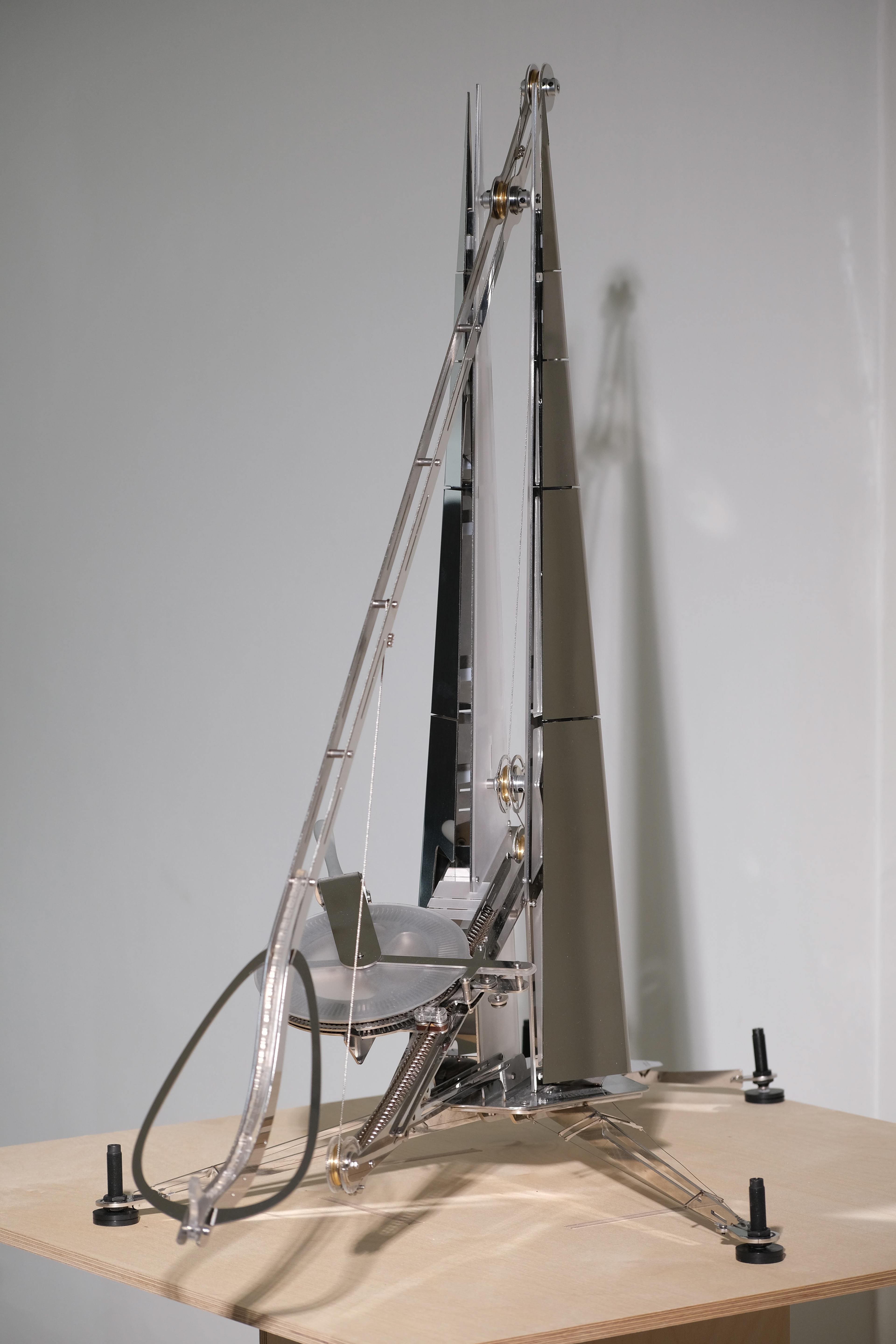 서류를 결재 받는 방법은 대면결재와 서면결제만 있는 것이 아니다. 당신의 소중한 시간을 치환시켜 만든 서류를 결제받기 위하여 가장 강렬한 방법으로 던져보도록 하자. TREBUCHET는 중세 공성무기에서 모티브를 따왔으며, 강력한 장력을 지닌 스프링을 사용하여 3 오피스 테이블만큼의 거리를 가로질러 서류를 이동시킬 수 있다. 이만큼의 노력과 결의를 가지고 신속히 송부된 서류라면 그 누구든 관심을 가질 수 밖에 없을 것이다. 이 기계는 실질적인 서류처리 기기로써의 기능을 수행하기도 하지만, 그 누구도 당신을 함부로 대할 수 없도록 하는 상징적인 랜드마크로 당신의 자리에 자리잡을 것이다.